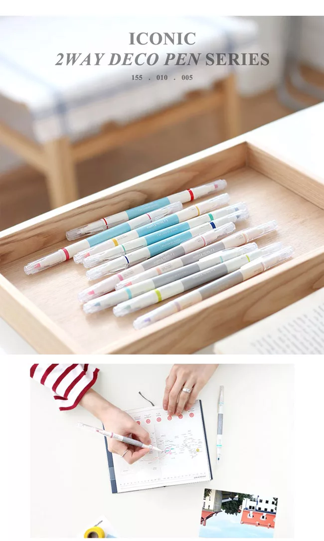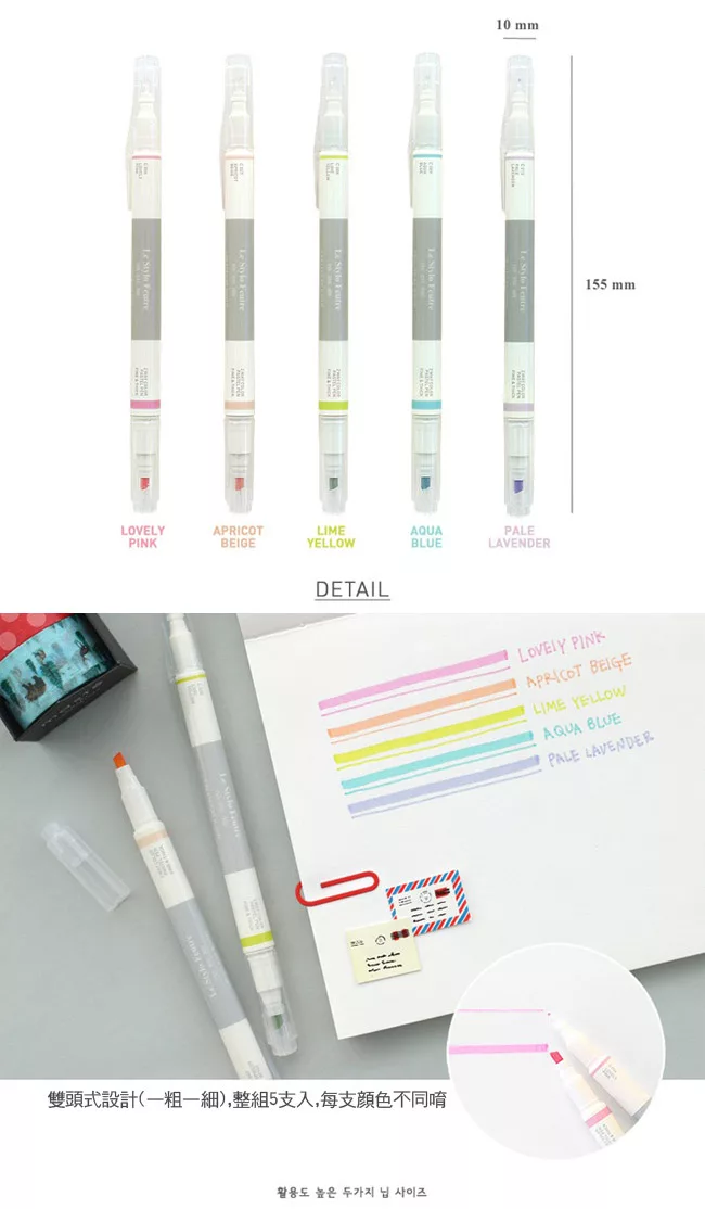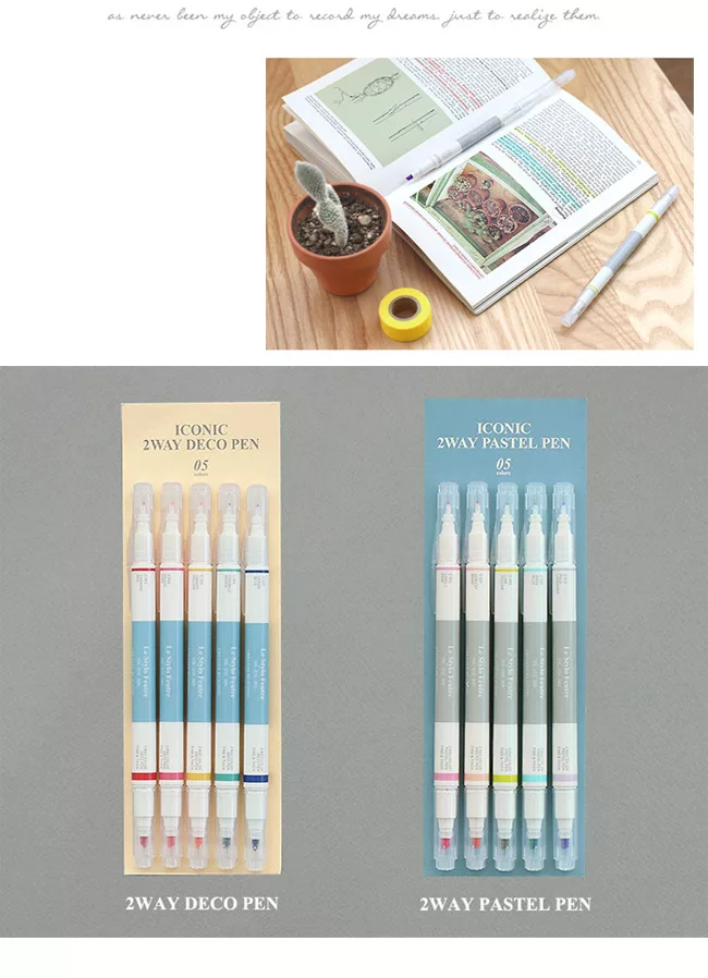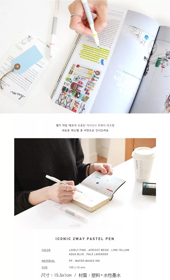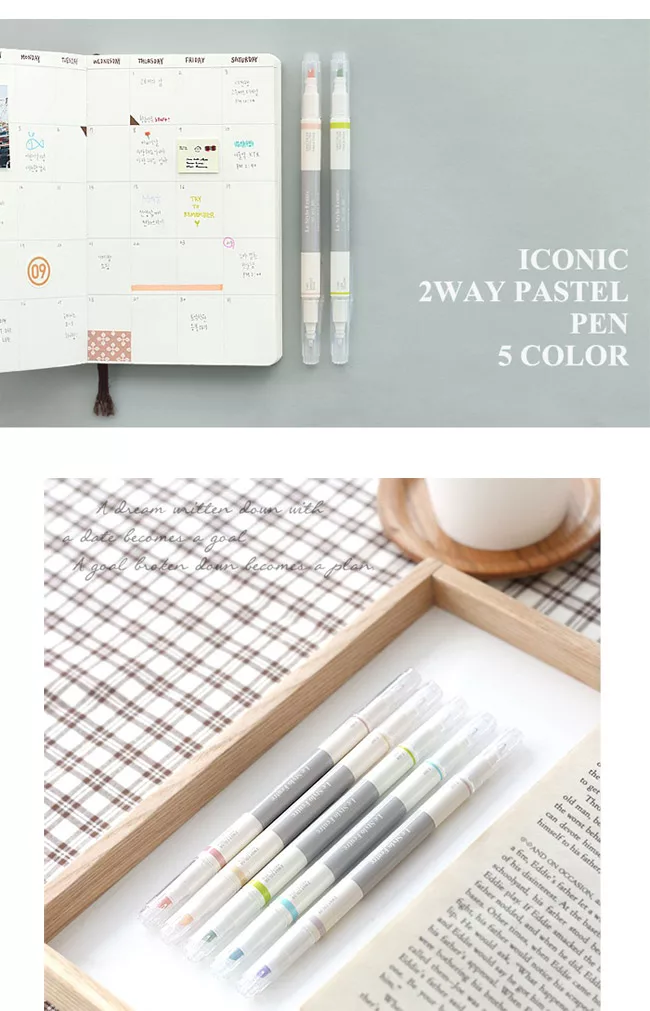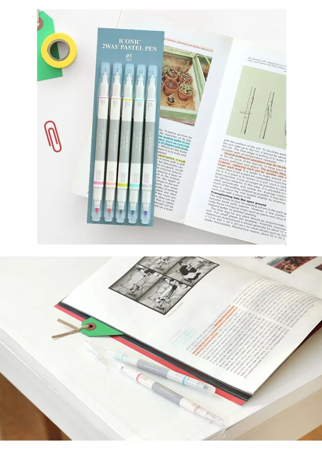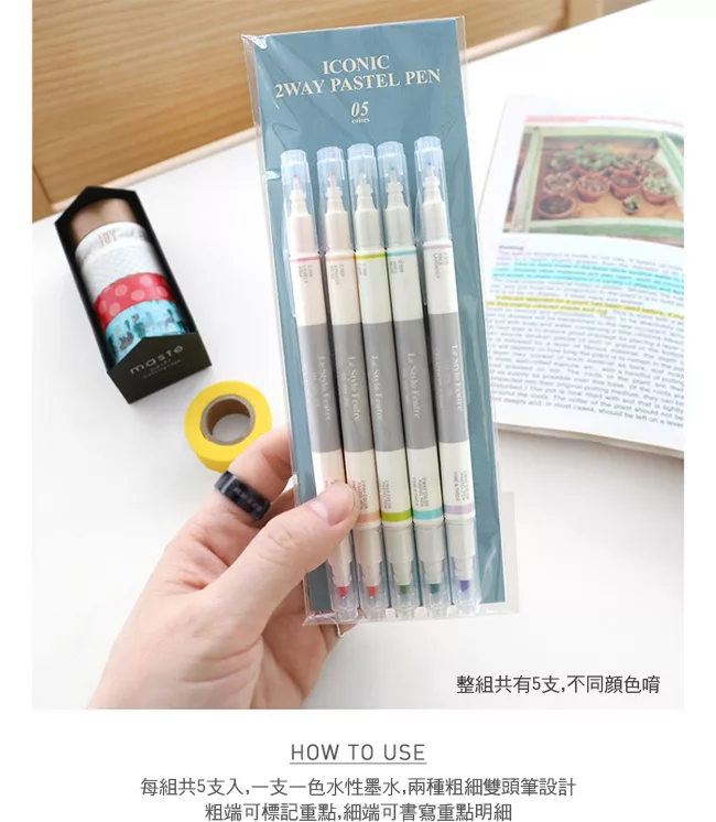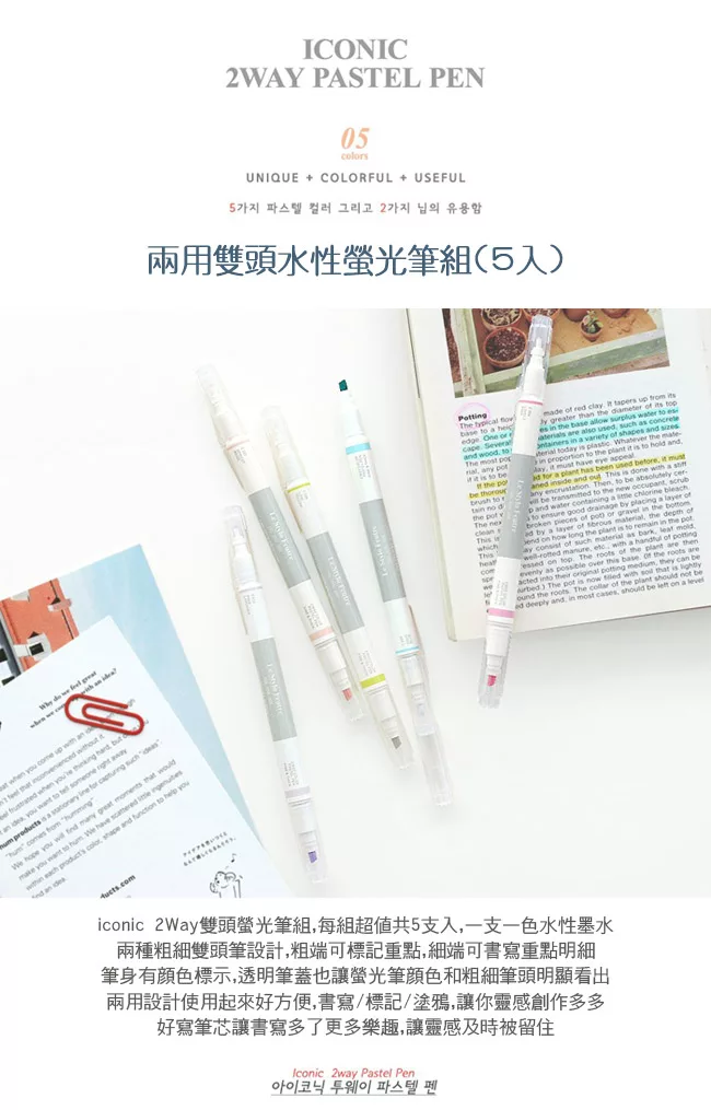 ICONIC 2way Pastel Pen,初春馬卡龍繽紛色彩螢光筆,絕對是筆記本的好夥伴,雙頭兩用螢光筆每組超值共5支入,