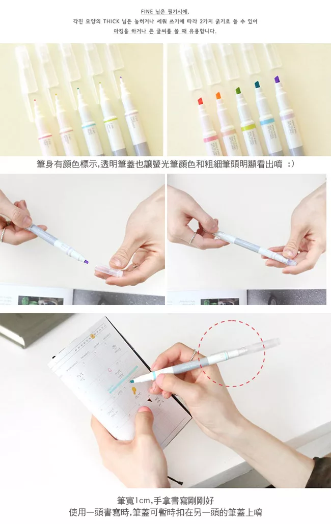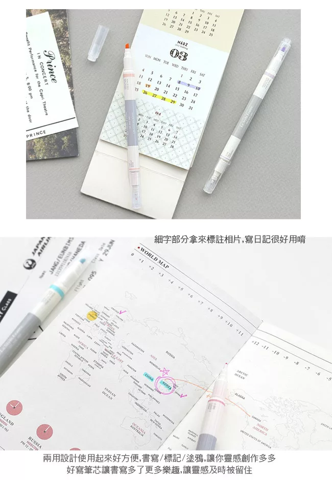 一粗一細雙頭筆芯設計,粗端可標記重點,細端可書寫重點明細。